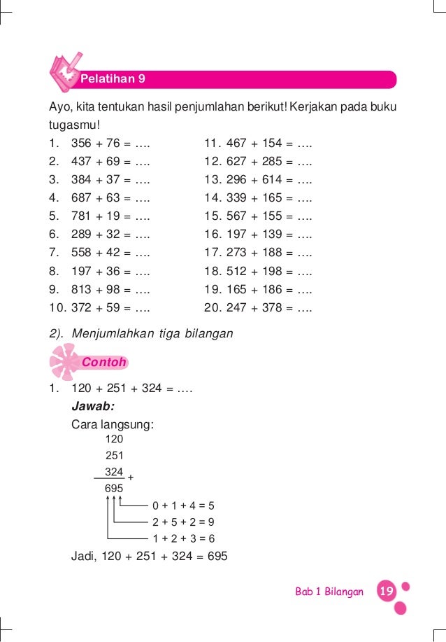 3 from Kunci jawaban matematika kelas 5 sd/mi halaman 19, tepatnya pada materi 1 tentang oprasi hitung pecahan meliputi penjumlahan dan pengurangan pecahan, perkalian dan pembagian pecahan dan desimal pada buku senang belajar matematika kelas v. Dengan adanya kunci jawaban ini dharapkan dapat meningkatkan siswa untuk lebih giat belajar dirumah. Untuk membantu menemukan jawaban yang tepat berikut kami bagikan alternatif kunci jawaban soal yang terdapat pada buku senang belajar matematika kelas 5 halaman 195, 196. Urutkan bilangan bulat berikut dari yang terkecil hingga terbesar. Kelas 5 sekolah dasar kunci jawaban tematik kelas. Buku siswa yang digunakan sebagai sumber belajar di kelas 5 merupakan buku tematik terpadu kurikulum 2013 k13. Kunci jawaban buku siswa senang belajar matematika kelas 5 sd/mi kurikulum 2013 revisi tahun 2018 halaman 242, 243, 244 Dalam pembelajaran matematika kelas 5 sd terdapat beberapa latihan soal yang harus dikerjakan oleh siswa secara mandiri.